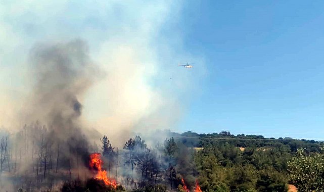 TEKİRDAĞ'ın Şarköy ilçesinde çıkan anız yangını ormana sıçradı. İtfaiye ekipleri yangına havadan ve karadan müdahale ediyor.Şarköy'ün Kaytazdere mevkisinde biçilmiş buğday tarlasında saat 13.00 sıralarında anız yangını çıktı. Alevler rüzgarın da etkisiyle ormana sıçradı. Çevredekilerin ihbarı üzerine bölgeye Şarköy Orman Şefliği ile Tekirdağ Büyükşehir Belediyesi itfaiye ekipleri sevk edildi. İtfaiye ekipleri yangına müdahale ederken, çalışmalara havadan 2 uçak ve 3 helikopter de destek verdi. Çiftçiler yangın bölgesindeki tarlalarda bulunan saman balyalarını kaldırmak için yoğun çaba harcadı. Yangında, üreticilere ait üzüm bağları, ceviz ve zeytin bahçeleriyle ayçiçeği ekili tarlalar da zarar gördü.Besiciler de bölgede bulunan hayvanlarını güvenli alanlara götürdü. Yüksek gerilim hattının geçtiği yangın bölgesinde akımların kesilmesi üzerine Şarköy'ün bazı kesimlerinde elektrik kesintileri yaşandı. Yangını kontrol altına almak için ekiplerin havadan ve karadan çalışması sürüyor.