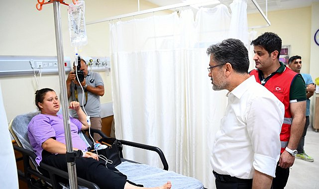 BAKAN YUMAKLI DUMANDAN ETKİLENENLERİ HASTANEDE ZİYARET ETTİTekirdağ'ın Şarköy ilçesinde çıkan orman yangını nedeniyle bölgeye gelerek incelemelerde bulunan Tarım ve Orman Bakanı İbrahim Yumaklı, söndürme çalışmaları sırasında dumandan etkilenen Orman Genel Müdürlüğü personelleri ile vatandaşları tedavi gördüğü Şarköy Devlet Hastanesi'nde ziyaret etti