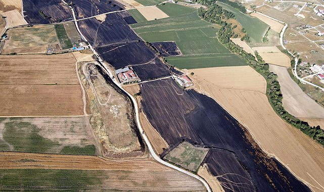 TEKİRDAĞ'ın Saray ilçesinde çıkan yangında yaklaşık 400 dönüm buğday ekili tarla zarar gördü.Yangın, saat 15.30 sıralarında Saray'ın Kemalpaşa Mahallesi Güneşkaya mevkisinde çıktı. Henüz belirlenemeyen nedenle çıkan yangında alevler kısa sürede büyüyüp buğday ekili tarlaları sardı. Çiftçiler, traktör ve su tankerleri ile alevlere müdahale ederek, söndürmeye çalıştı. Bu sırada yanan alanlara yakın bölgedeki tarlaya biçerdöver getirilerek buğdaylar aceleyle hasat edilmeye başladı. Hasat edilen tarlaya alevlerin ulaşmasını engellemek için üreticiler traktörlerle önlem almaya çalıştı.İhbar üzerine bölgeye Saray Belediyesi ile Orman İşletme Müdürlüğü'ne ait itfaiye ekipleri sevk edildi. Ekiplerin yaklaşık 1 saat süren çalışmasıyla alevler kontrol altına alındı. Saray Kaymakamı Refik Özsoy ile Belediye Başkanı Abdül Taşyasan da bölgeye gelerek söndürme çalışmalarını takip etti. Başkan Taşyasan, yangınlara karşı vatandaşların çok dikkatli olması gerektiğini belirterek, alevlere 50 kişilik ekiple müdahale ettiklerini söyledi. Taşyasan, "Yangında zarar gören vatandaşlarımız var. Yerel yönetim olarak üzerimize ne düşüyorsa yapacağız. Hava sıcaklıkları daha da artacak. Vatandaşlarımızdan rica ediyorum, yalvarıyorum ne olur dikkat edelim. 400 dönüm şu anda yandı, çiftçinin 1 sene uğraştığı alan şu anda kömür gibi. Mala geldi ama mal canın yongasıdır. Daha dikkatli daha duyarlı olalım" dedi.