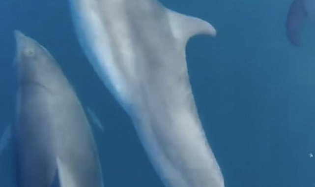 BARTIN'ın Amasra ilçesinde balık tutmak için denize açılan Cem Yavuzyiğit (37), teknesinin önünde yüzen balıkları cep telefonu ile görüntüledi.Amasra ilçesine bağlı Tavşan Adası mevkisinde, dün akşam saatlerinde zıpkınla balık avlamak için teknesiyle denize açılan Cem Yavuzyiğit, yaklaşık 50 metre açıkta 4 yunusla karşılaştı. Tekneyle yarışır gibi yüzmeye başlayan yunuslar, güzel görüntüler oluşturdu. Yavuzyiğit, yunuslara eliyle ekmek verdi. Bir süre tekne ile suda ilerleyen yunuslar daha sonra gözden kayboldu. Yavuzyiğit, o anları cep telefonu kamerasıyla kaydetti.