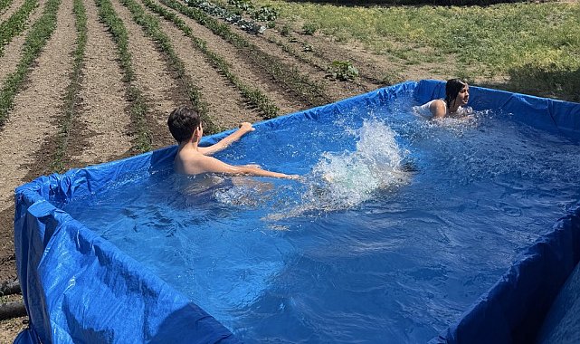 TOKAT'ta Mustafa Varol (64), sıcaktan bunalan torunları için traktör römorkunu havuza çevirerek serinlemelerini sağladı. Tokat merkeze bağlı Bedirkale köyünde yaşayan Mustafa Varol, tatil için yanına gelen torunlarının aşırı sıcaktan bunalması üzerine, branda gererek traktör römorkunun içini suyla doldurdu. Torunları suya girerek serinlerken, Varol ise o anları cep telefonu kamerası ile kayda aldı.