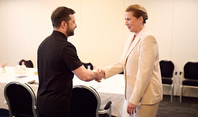 – UKRAYNA Devlet Başkanı Volodimir Zelenskiy ile Danimarka Başbakanı Mette Frederiksen, Lahey'de NATO Devlet ve Hükümet Başkanları Zirvesi öncesi görüştü.Ukrayna Devlet Başkanı Volodimir Zelenskiy ile Danimarka Başbakanı Mette Frederiksen, Hollanda'nın Lahey kentinde düzenlenen NATO Devlet ve Hükümet Başkanları Zirvesi öncesinde bir araya geldi. Görüşmeye ilişkin sosyal medya hesabından açıklamalarda bulunun Zelenskiy, "Danimarka Başbakanı Mette Frederiksen ile verimli bir toplantı gerçekleştirdim. Ortak silah üretimi, Danimarka'nın AB Konseyi Başkanlığı ve savaşçılarımıza yönelik devam eden destek konularında kapsamlı bir görüşme yaptık. Önemli kararlar aldık: Danimarka, ortak savunma üretimine başlayacağımız ilk ülke olacak. Şimdi Ukrayna'yı samimiyetle destekleyen her ülke, bizimle karşılıklı fayda sağlayan bir ortaklığa güvenebilir. Birlikte Avrupa'yı güçlendiriyoruz. Danimarka'ya anlamlı savunma ve siyasi desteği için minnettarım. Teşekkürler Mette, her zaman sana ve dost Danimarka halkına güvenebildiğimiz için" dedi.Frederiksen ise görüşmeye ilişkin açıklamasında "Avrupa'daki güvenlik, güçlü bir Ukrayna ile başlar. Bugün Başkan Zelenskiy ile görüşmek güzeldi. Ukrayna'nın savunmasını, toparlanmasını ve barış yolunu desteklemeye devam edeceğiz" ifadelerini kullandı.GÖRÜNTÜ DÖKÜMÜ-------------------------------------------------- Ukrayna Devlet Başkanı Zelenskiy ile Danimarka Başbakanı Frederiksen'in görüşmesinden görüntüler