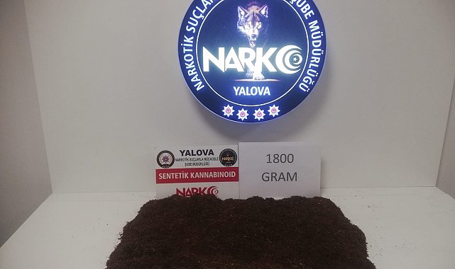 YALOVA'da düzenlenen operasyonda, 1 kilo 800 gram sentetik uyuşturucu ele geçirilirken, gözaltına alınan 1 şüpheli tutuklandı.İl Emniyet Müdürlüğü Narkotik Suçlarla Mücadele Şube Müdürlüğü ekipleri, A.Y. isimli şüphelinin, uyuşturucu ticareti yaptığı bilgisi üzerine çalışma başlattı. Ekipler tarafından kimlik ve adres bilgileri tespit edilen A.Y. teknik ve fiziki takibe alınarak, Bağlarbaşı Mahallesi'nde bulunan adresine operasyon düzenlendi. Evde yapılan aramada, 1 kilo 800 gram sentetik kannabinoid maddesi ele geçirildi. Gözaltına alınan A.Y., emniyetteki işlemlerinin ardından, 'Uyuşturucu veya uyarıcı madde ticareti yapmak' suçundan sevk edildiği adliyede çıkarıldığı mahkemece tutuklanarak cezaevine gönderildi.