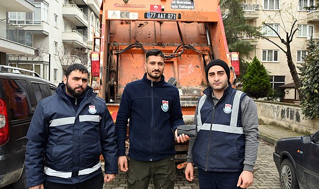 YALOVA Belediyesi Temizlik İşleri Müdürlüğü personeli, çöp kutusunun yanında buldukları cüzdanı sahibi Ufuk Atmaca'ya (58) teslim etti.Yalova Belediyesi Temizlik İşleri Müdürlüğü personeli, Fevzi Çakmak Mahallesi'nde temizlik yaptığı sırada çöp kutusunun yanında cüzdan buldu. İçerisinde 6 bin TL'nin yanı sıra eşi ve oğlunun cep telefonunu numarası olan ve 'Başıma bir şey gelirse bu numaraları arayın' yazan not çıkan cüzdan, adresi öğrenilen Ufuk Atmaca'ya evinde teslim edildi. Atmaca görevlilere teşekkür ederken, Yalova Belediyesi yetkilileri personelin duyarlı bir tavır sergilediğini belirterek, her zaman halkın yanında olduklarını belirtti.