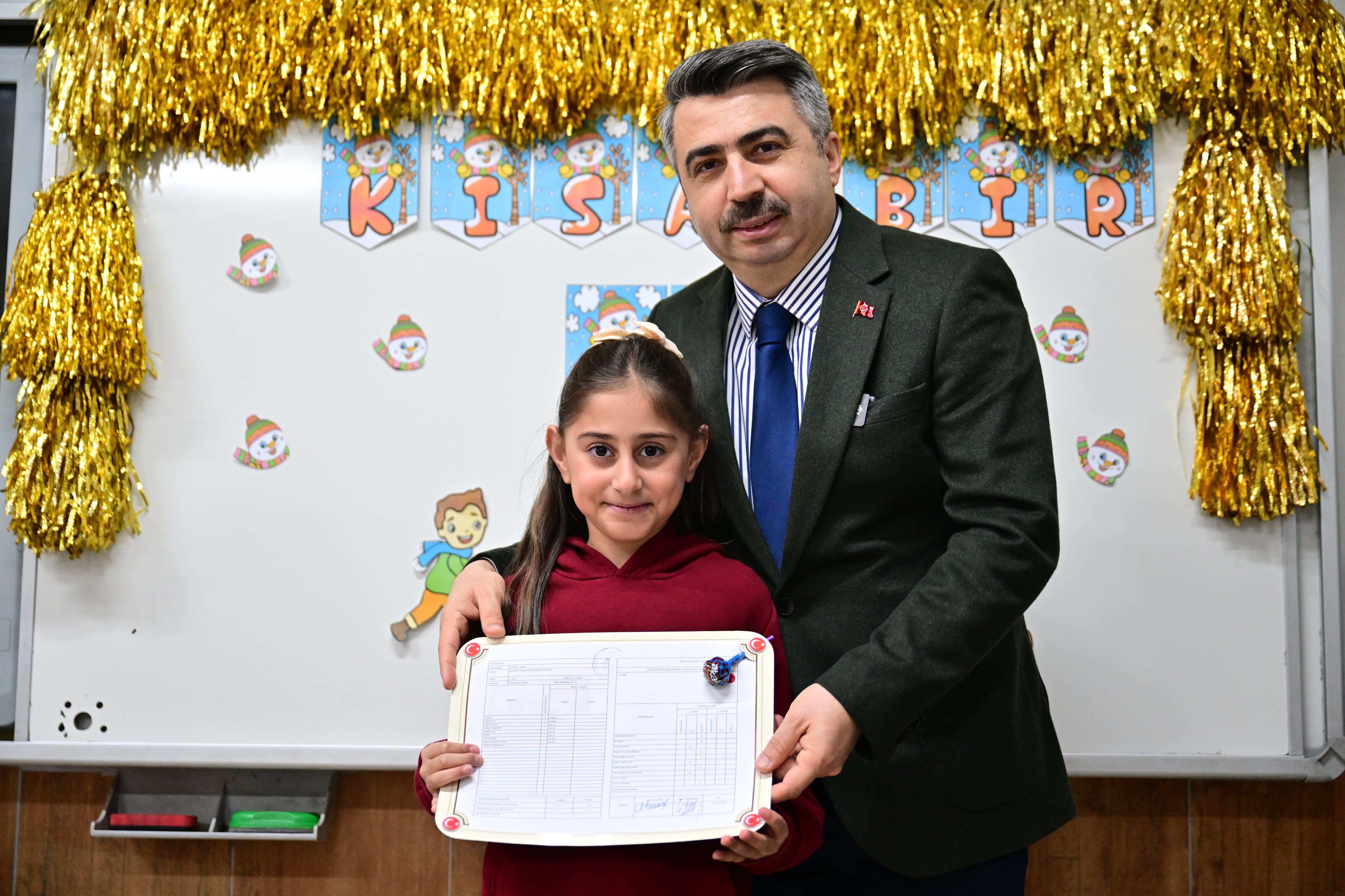Eğitimden spora, kültürden sanata kadar gençleri ve çocukları hayatın her alanında destekleyen Yıldırım Belediye Başkanı Oktay Yılmaz, Yıldırım Kaymakamı Metin Esen ve İlçe Milli Eğitim Müdürü Mustafa Sevinç ile birlikte Değirmenönü İlkokulu’nda düzenlenen karne törenine katıldı. Öğretmenler odasını ziyaret ederek öğretmenlerle sohbet eden Başkan Oktay Yılmaz, ardından da Kaymakam Metin Esen ve İlçe Milli Eğitim Müdürü Mustafa Sevinç’le birlikte sınıfları gezdi. Yakından ilgilendiği öğrencilere çeşitli hediyeler veren Başkan Yılmaz, 2025-2026 Eğitim Öğretim Yılı’nın ilk dönemini tamamlayan miniklere karnelerini dağıttı.