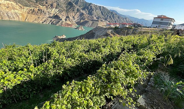 ARTVİN'de Türkiye'nin en yüksek barajı Yusufeli Barajı nedeniyle taşınan Yusufeli ilçesinde, kök kısmından sökülüp, yeni yerleşim alanına nakledilen ağaçlar, meyveler ve bağlar, yeni ilçenin tarihi ile tarımsal gelişimini şekillendiriyor. Baraj suları altında kalmadan önce kökleriyle yeni ilçeye nakledilen bağlarda bu yıl da üzüm hasat ediliyor. Üretici Mahmut Tüylü, "Geçen yıl 500 kilo civarında üzüm toplamıştık. Bu yıl nasip olursa 2 ton civarında üzüm toplayacağız" dedi.Yusufeli ilçesinde Çoruh Nehri'nin üzerine inşa edilip, 275 metre gövde yüksekliği ile Türkiye'nin en yüksek, dünyanın 5'inci en yüksek barajı Yusufeli Barajı'nda enerji üretimi sürüyor. Baraj inşası sürecinde Yusufeli halkı, sular altında kalan köylerinden, yeni inşa edilen yerleşim yerlerine taşınırken, 1,5 asrı aşkın tarihinde 7 kez taşınan eski ilçede, kök kısmından sökülüp, yeni ilçeye nakledilen ağaçlar, meyveler, tarım alanları ve bağlar, yeni ilçenin tarihi ile tarımsal gelişimini şekillendiriyor. Baraj suları altında kalan 7 köyden 50 bini aşkın kamyonla nakledilen verimli toprakla oluşturulan alanlarda çiftçiler, tarımsal faaliyetlerine devam ediyor. Hobi bahçelerinin yer aldığı yeni yerleşim alanına nakledilen bağlarda bu yılki üzüm hasat ediliyor. Yöreye özgü baraj kıyısında yetiştirilen 'turfanda üzümü', bölgenin yanı sıra Türkiye'nin birçok iline de gönderiliyor.'YETİŞTİĞİ ANDA TÜKENİYOR'Üretici Mahmut Tüylü, bu yıl 2,5 ton üzüm toplamayı hedeflediklerini belirterek, "Burası önceden vadiydi. Devlet burayı taşıma toprakla doldurdu. Eski bahçemdeki üzümleri bu alana getirdik. 2 kilometre yoldan su ve gübre getirdim. Damla sulama sistemi ile bahçemi sulayarak bu duruma getirdim. Yeni ilçedeki bu üzüm bahçesine 300 fidan dikmiştik, şimdi fidan sayısını 700'e çıkardık. Geçen sene 500 kilo civarında üzüm toplamıştık. Bu sene nasip olursa 2-2,5 ton civarında üzüm toplayacağız. İnce işçilik isteyen bir bahçe. Budama yapıyor, otlarını koparıp tekrar kazıyoruz. 2 günde bir sulama yapıyoruz. İlaç döküyoruz. Yusufeli'ye has 'Turfanda' dediğimiz bir üzüm türü yetişiyor. Başka yerde bu üzüm türü yok. Çok talep oluyor. Yetiştiği anda da tükeniyor. Kilosu şu an 100-150 TL arasında satılıyor" dedi.